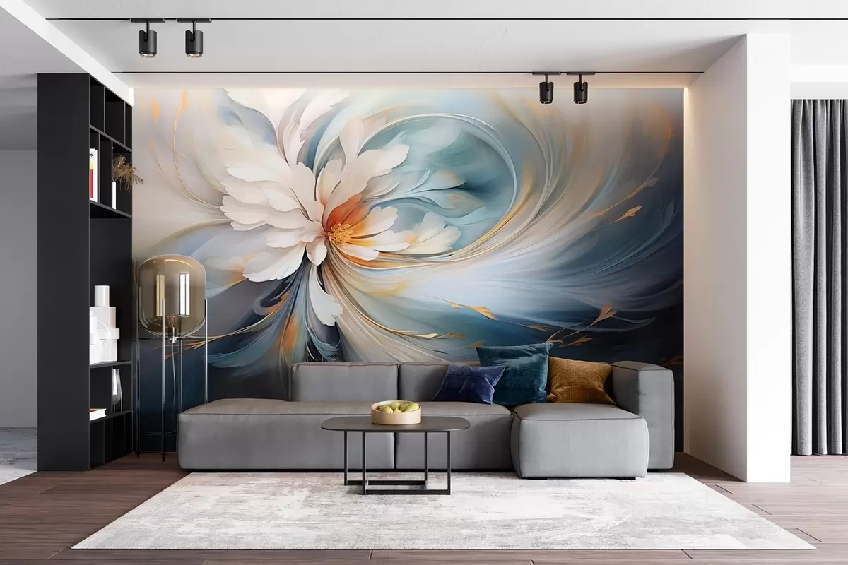 Carta da parati Fiore astratto nei toni del blu e dell'arancio nr. w09270v1