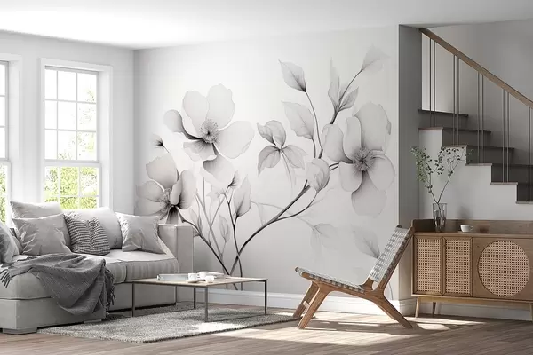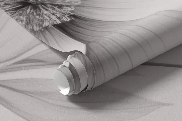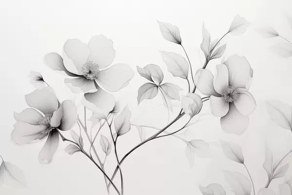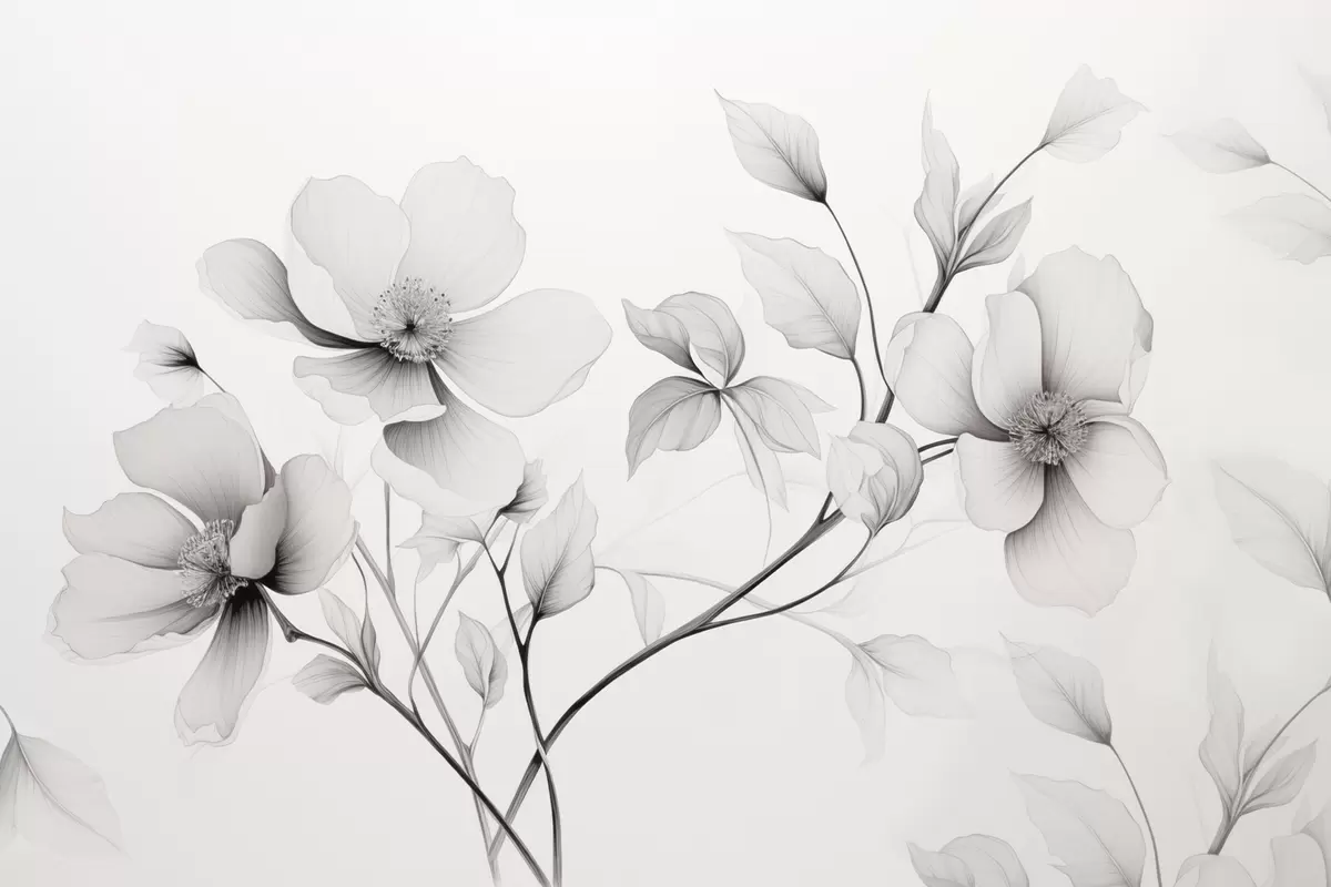 Carta da parati Fiori bianchi e neri con linee eleganti su sfondo grigio nr. w09271