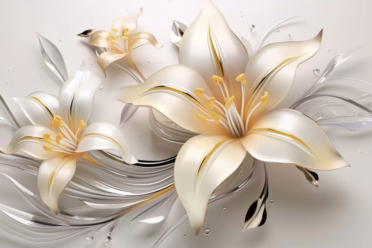 Carta da parati Gigli gialli con effetto 3D su sfondo chiaro nr. w09278