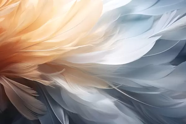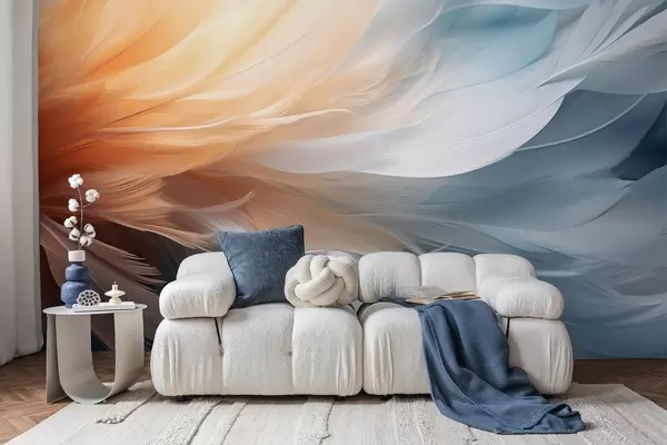 Carta da parati Delicate piume nei toni sfumati dell'arancio e del blu nr. w09282