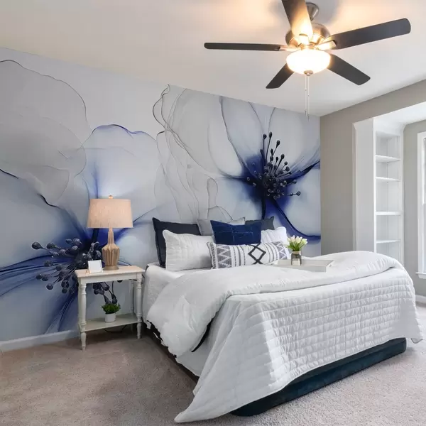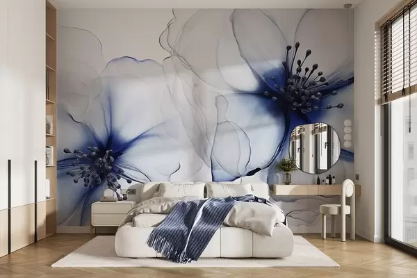 Carta da parati Due fiori blu dalla texture traslucida con stami visibili, petali delicati sovrapposti e una texture morbida e fluida nr. w09295v1