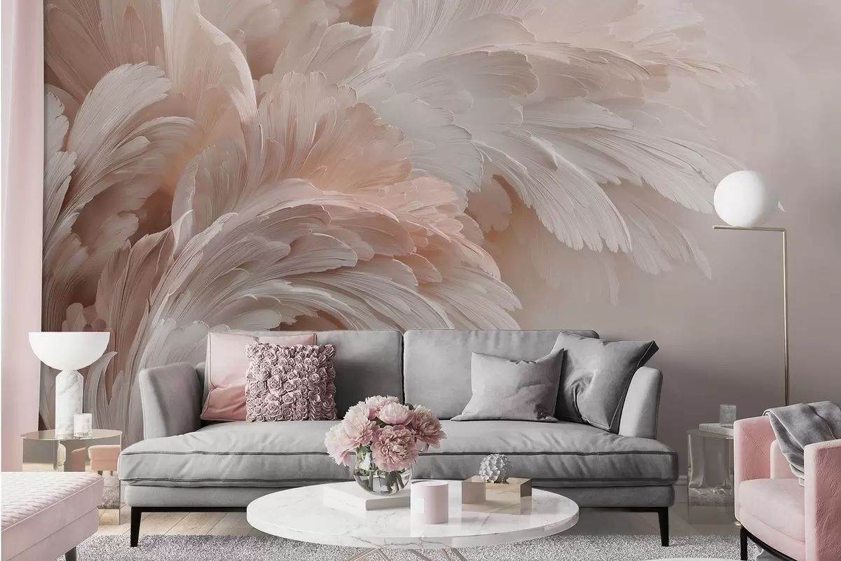 Carta da parati Piume e petali ariosi nelle tonalità del rosa crema nr. w09301