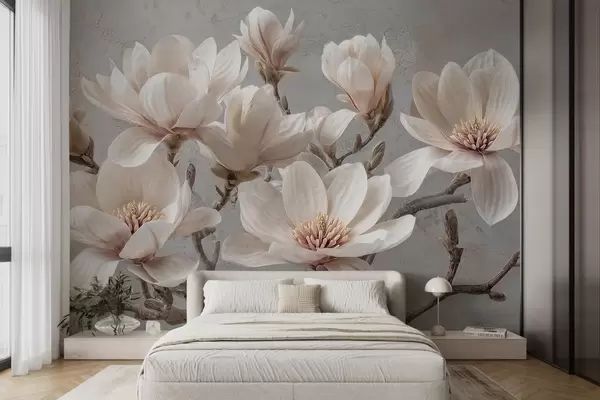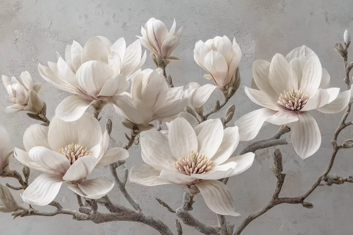 Carta da parati Rami di magnolia con grandi fiori chiari dai toni tenui nr. w09305