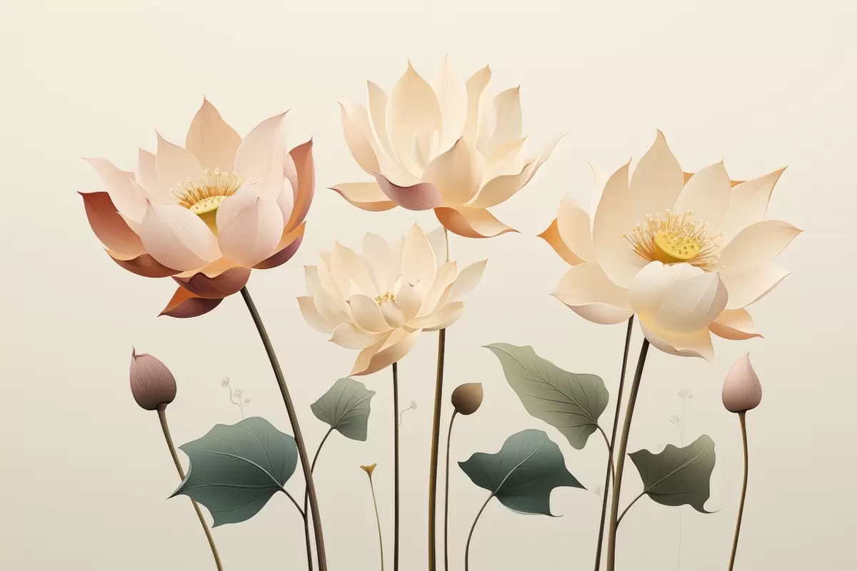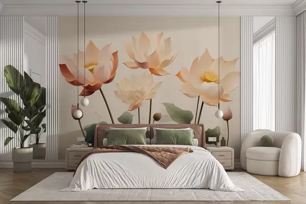 Carta da parati Eleganti fiori di loto in una delicata palette di colori pastello nr. w09306