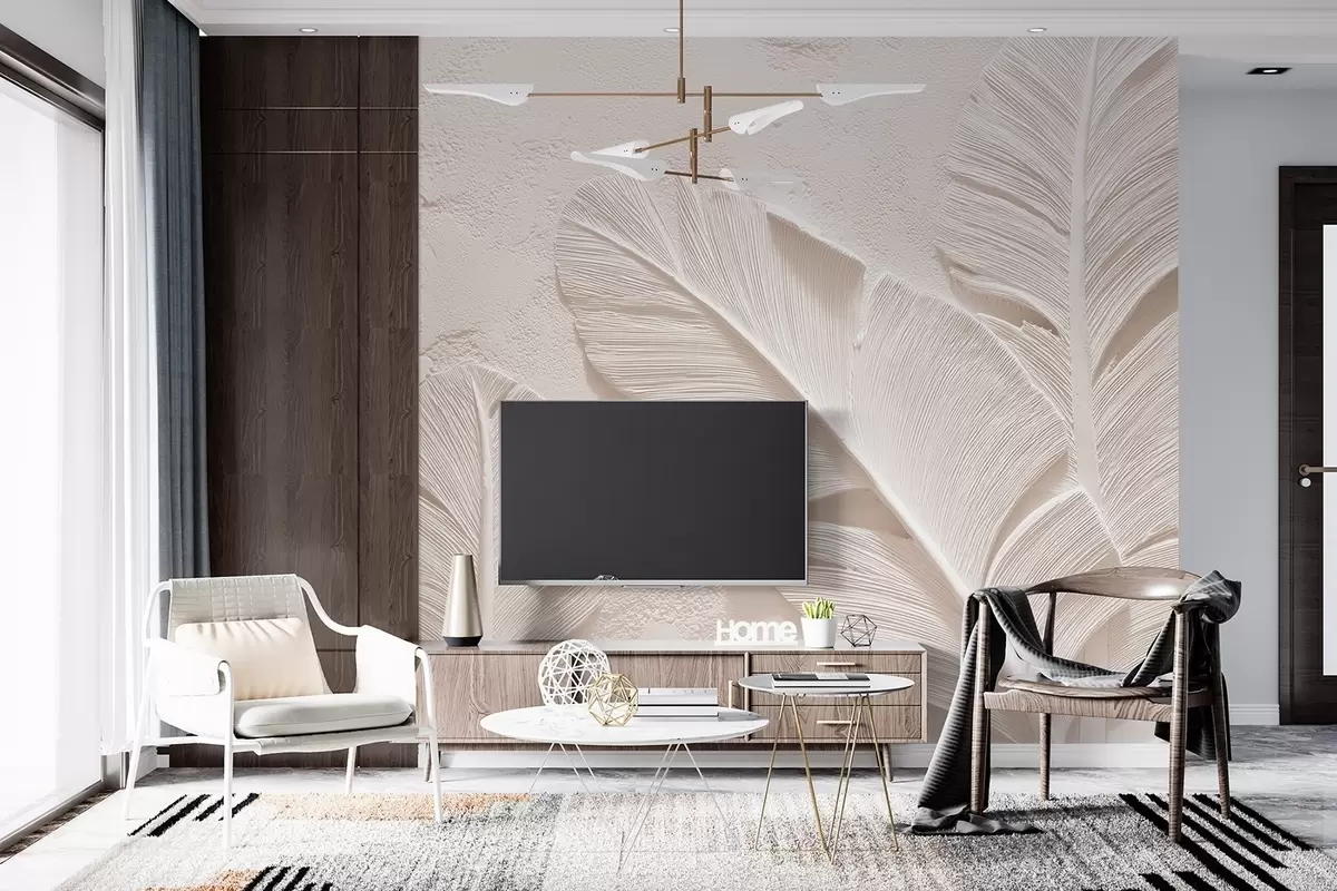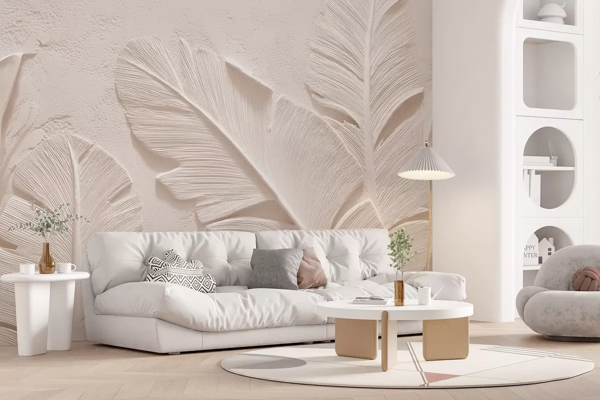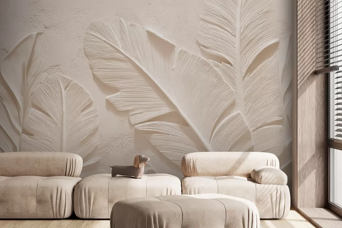 Carta da parati Foglie in rilievo nei caldi toni del beige-sabbia nr. w09307v1