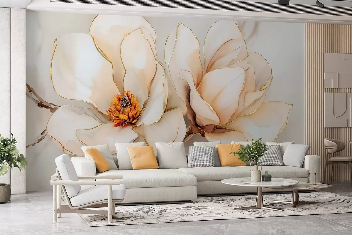 Carta da parati Grandi fiori di magnolia chiara con petali morbidi nr. w09308