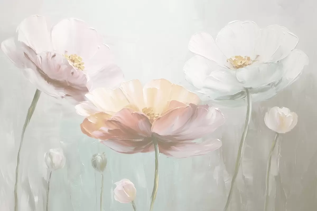 Carta da parati Papaveri volumetrici a pastello in stile pittura ad olio nr. w09310v1