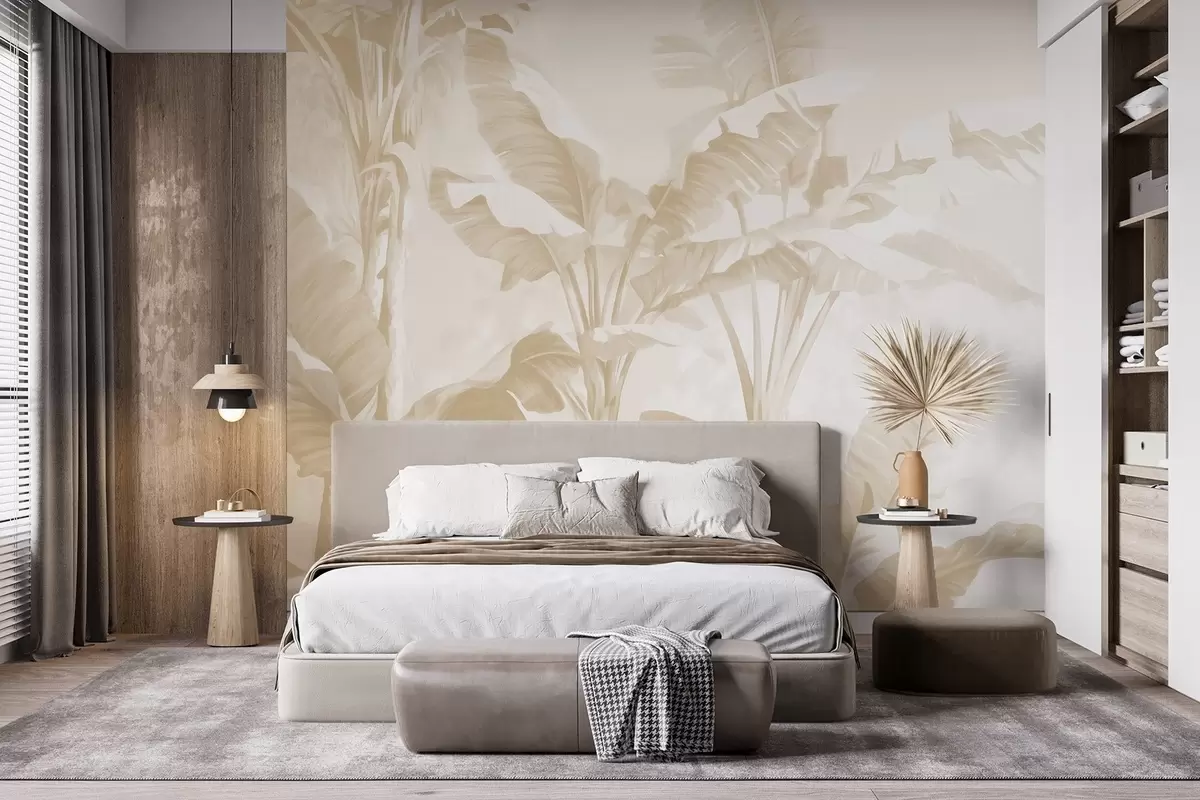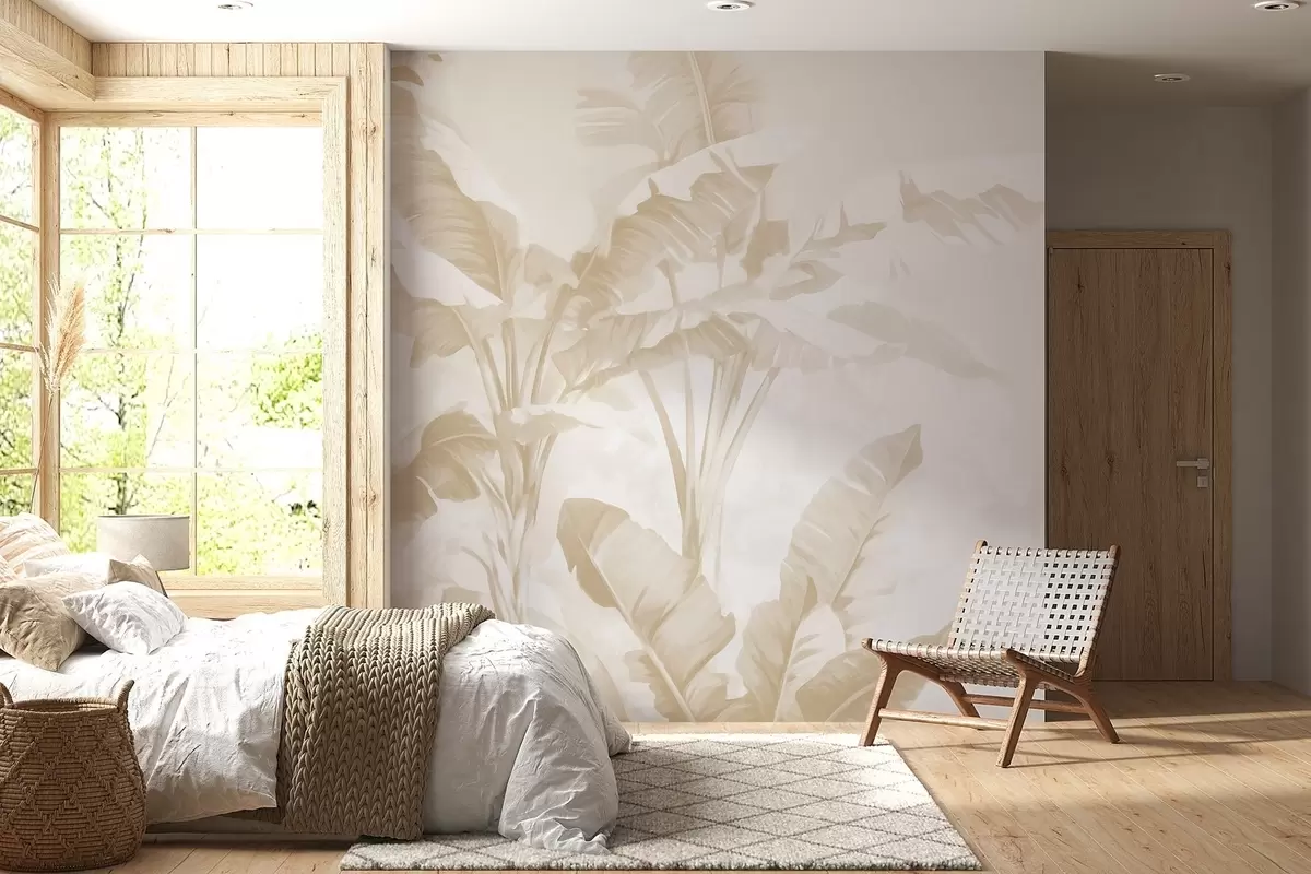 Carta da parati Foglie di banano tropicali in morbide tonalità beige nr. w09311v2