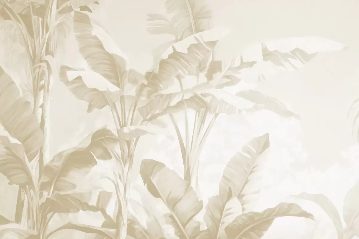 Carta da parati Foglie di banano tropicali in morbide tonalità beige nr. w09311v2