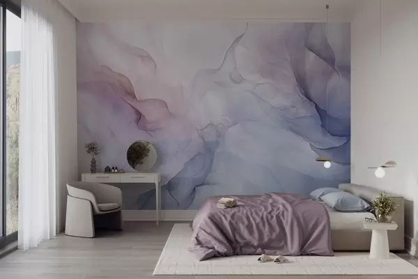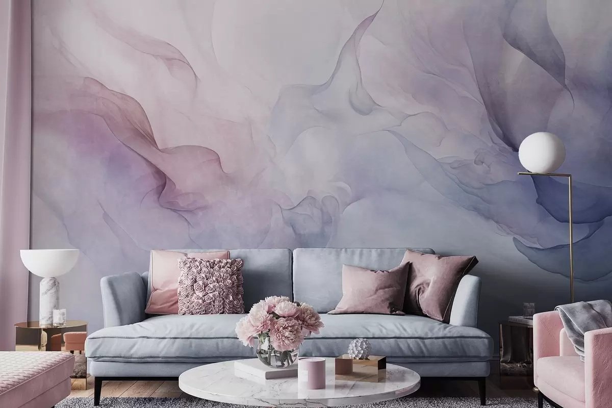 Carta da parati Pittura astratta con sfumature pastello di rosa, viola e blu che creano un effetto morbido nr. w09318
