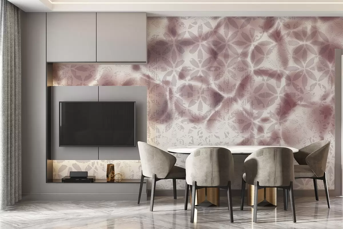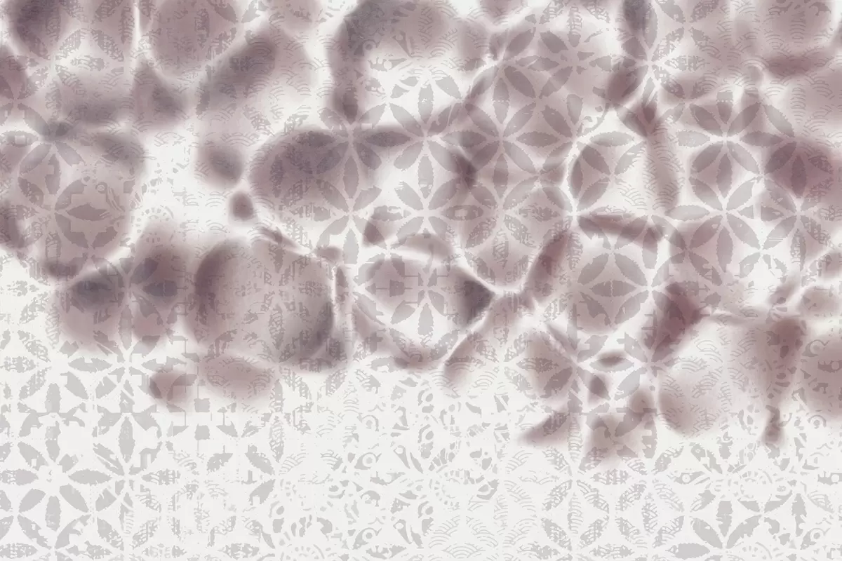 Carta da parati Arte astratta con stampa floreale a bordo, effetto sbiadito e sfocato, che crea un'atmosfera morbida e sognante nr. w09322v1