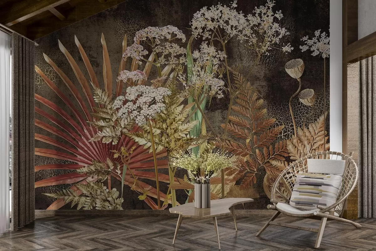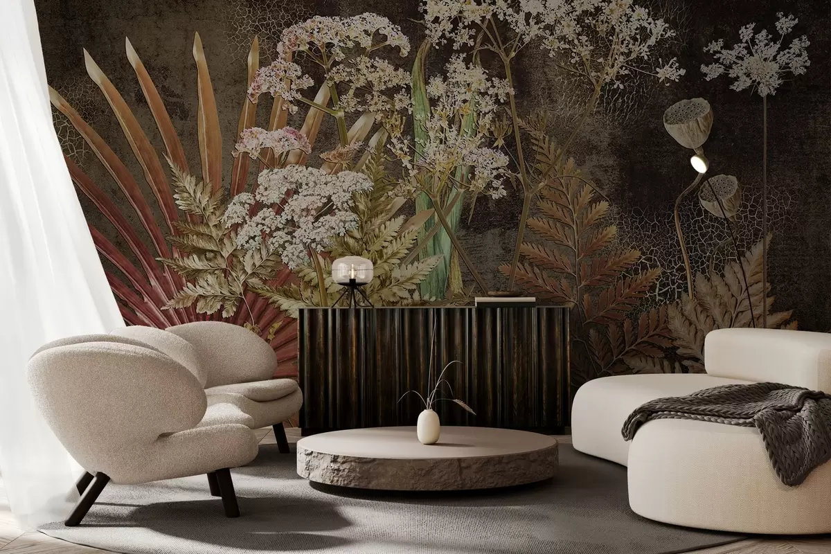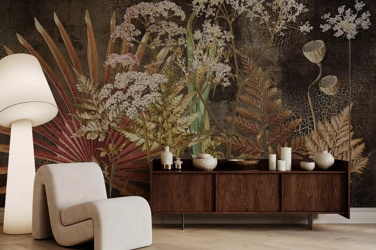 Carta da parati Erbario su sfondo scuro nr. w09323
