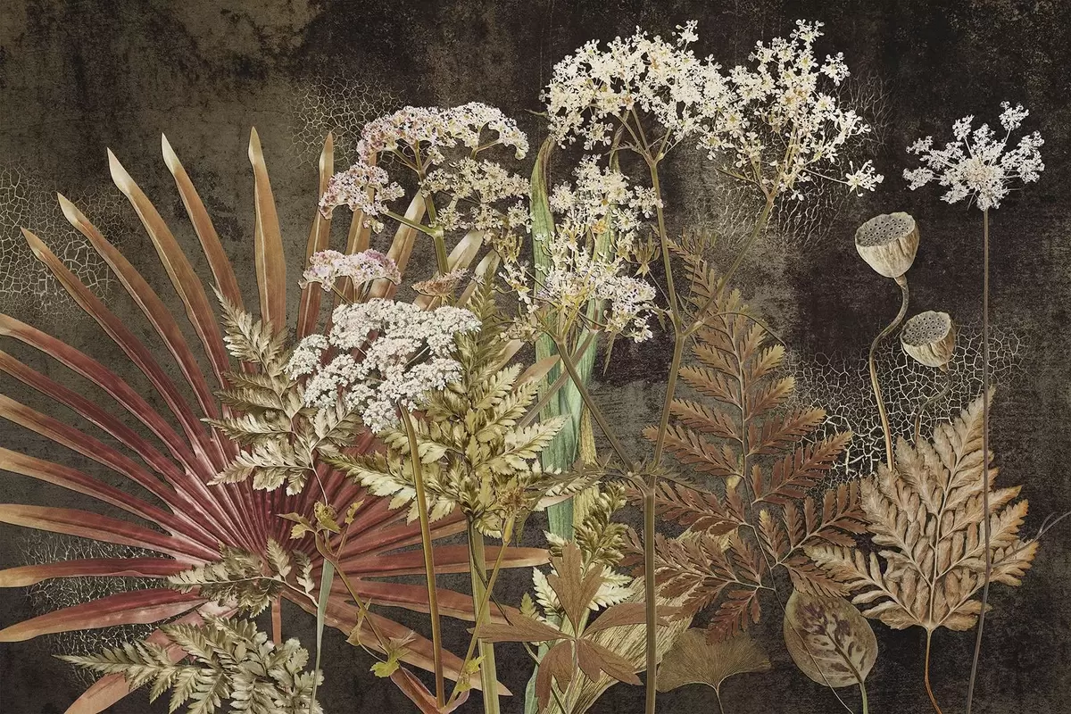 Carta da parati Erbario su sfondo scuro nr. w09323