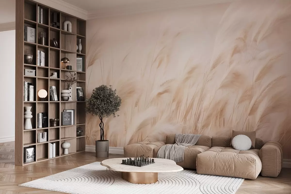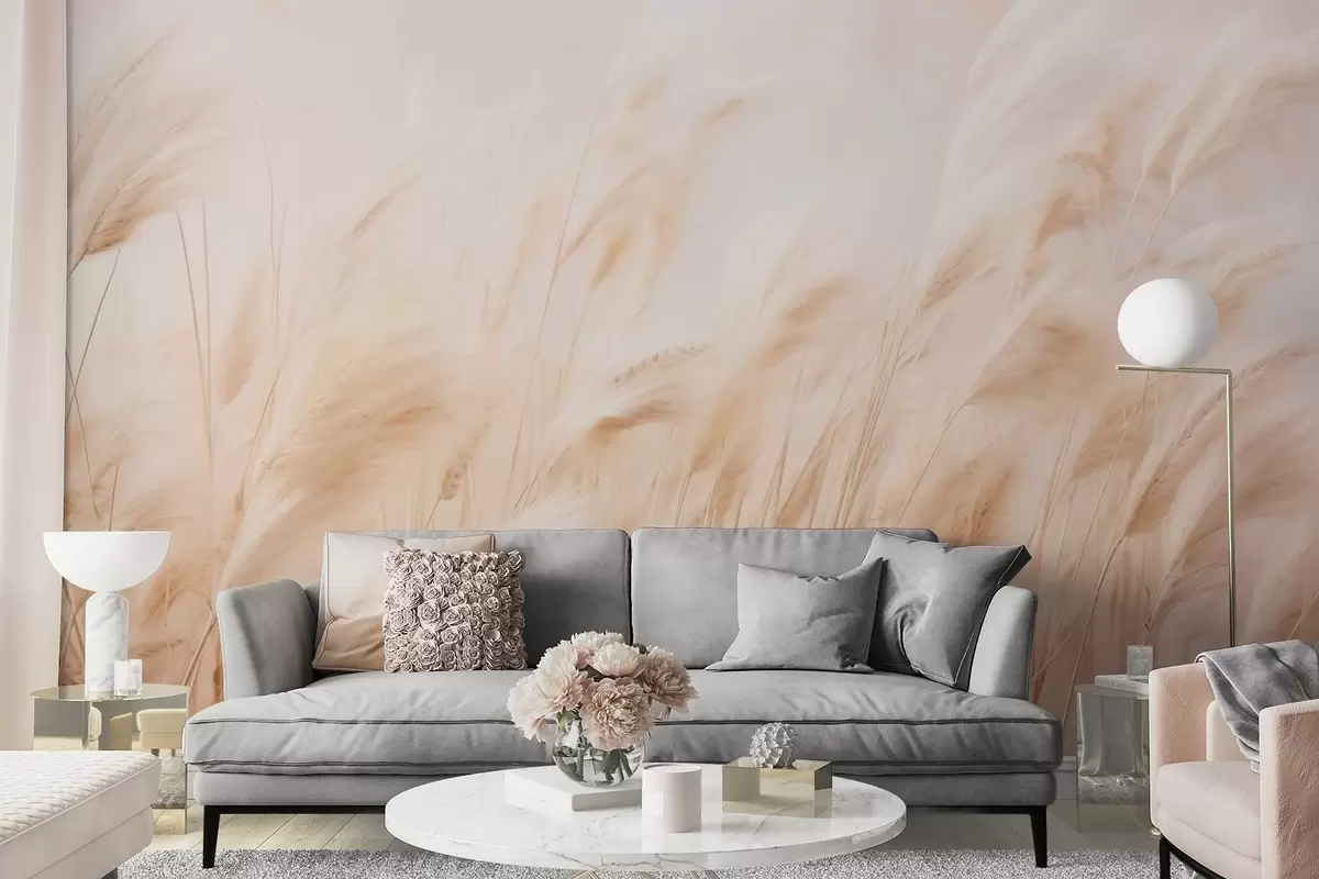 Carta da parati Il delicato ondeggiare della pampa nei toni tenui del crema e del beige nr. w09330