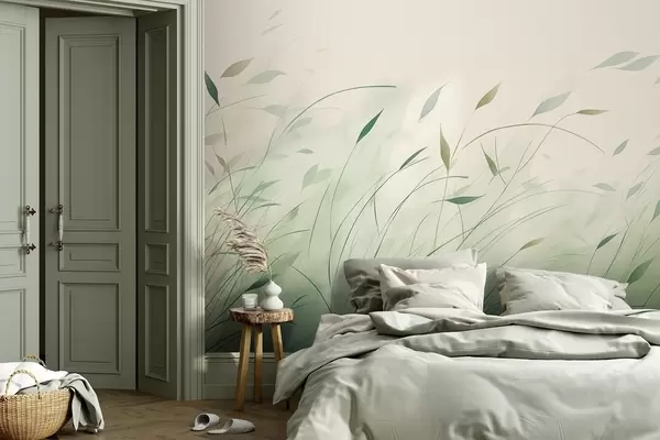Carta da parati Erba verde nel vento in stile acquerello nr. w09331