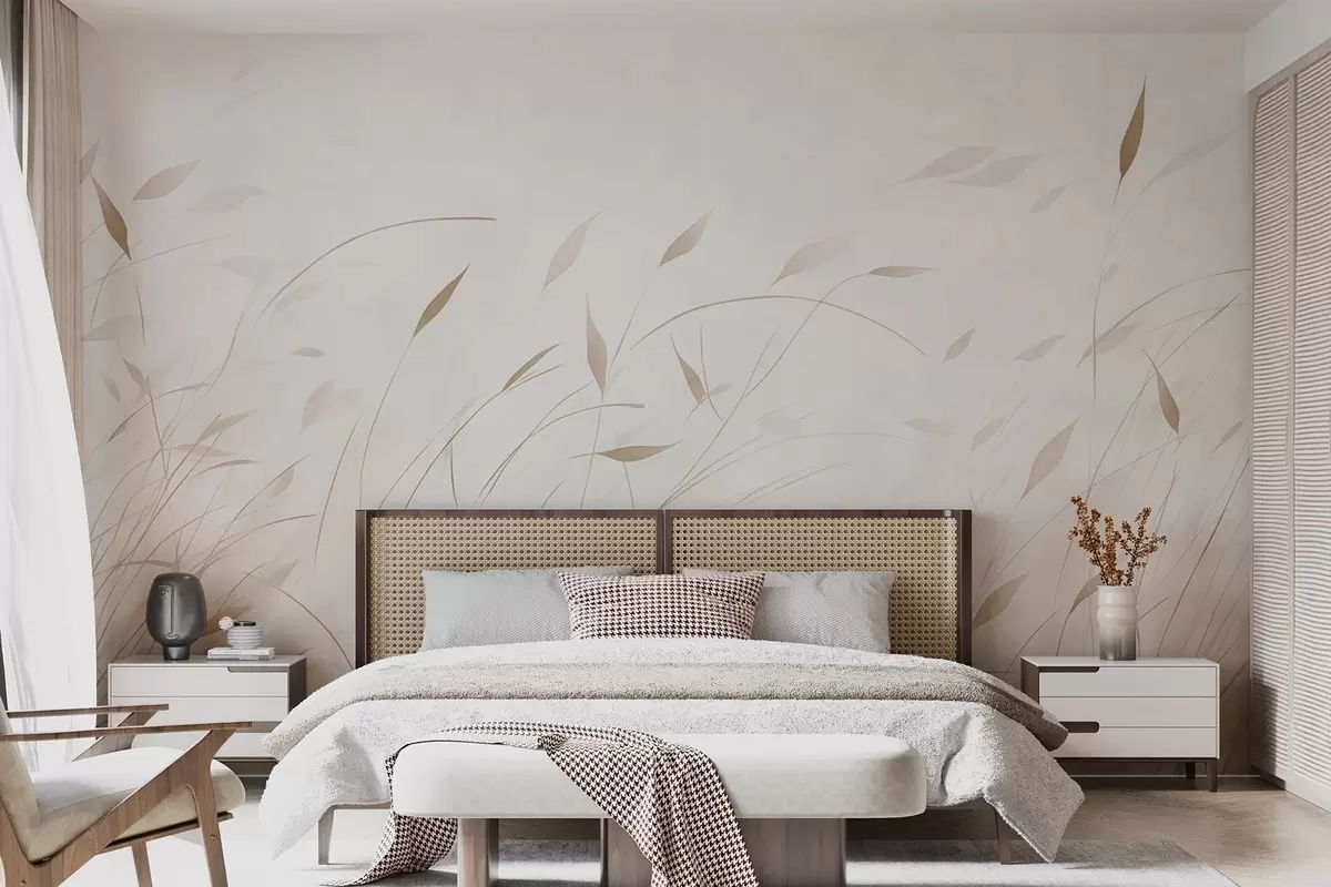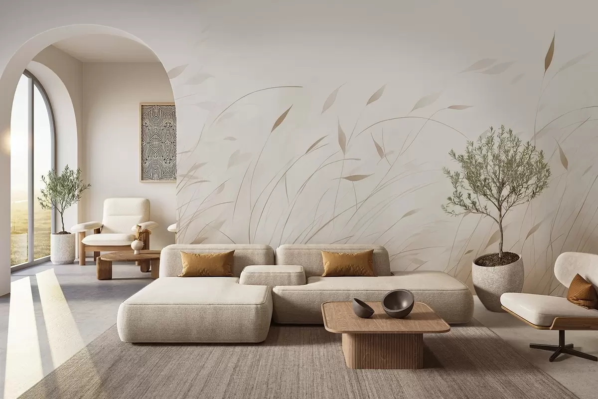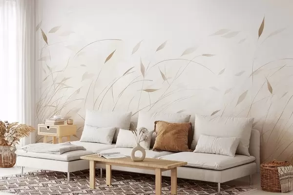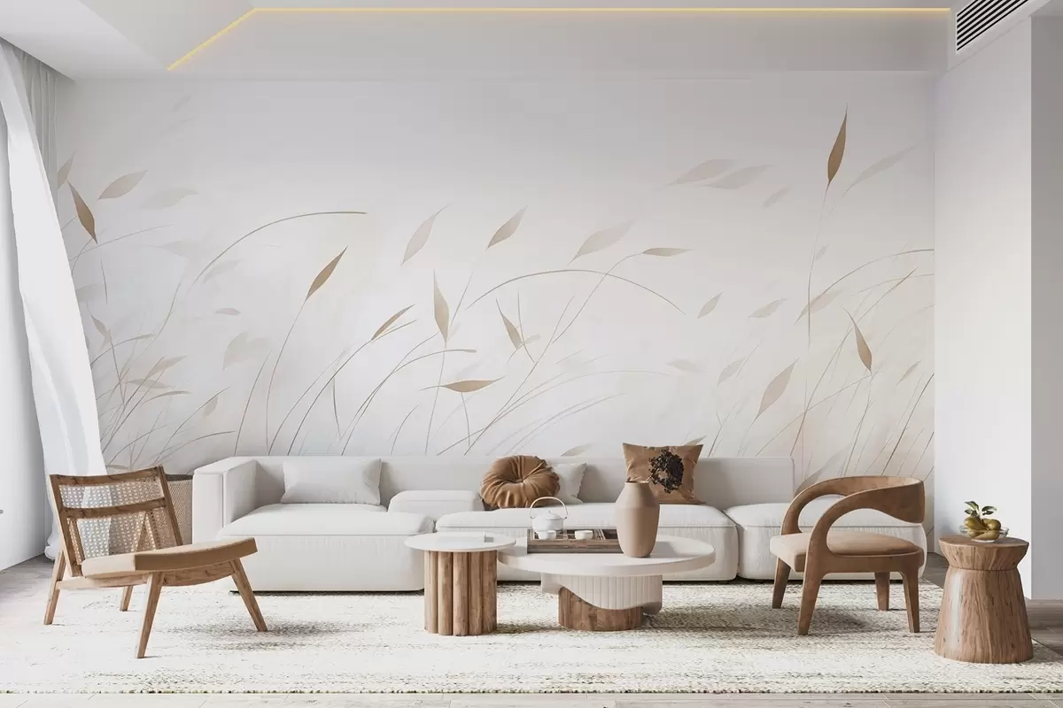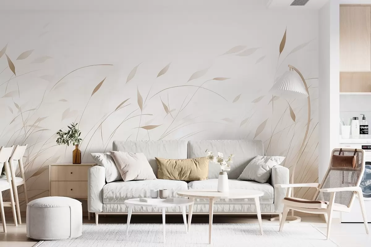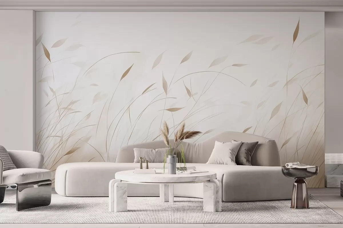 Carta da parati Erba al vento in stile acquerello nei toni del beige nr. w09331v1