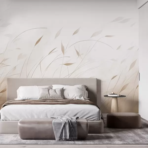 Carta da parati Erba al vento in stile acquerello nei toni del beige nr. w09331v1
