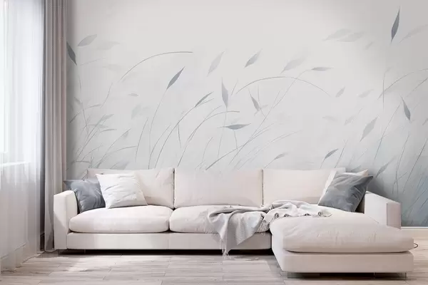 Carta da parati Erba al vento in stile acquerello nei toni del blu nr. w09331v2
