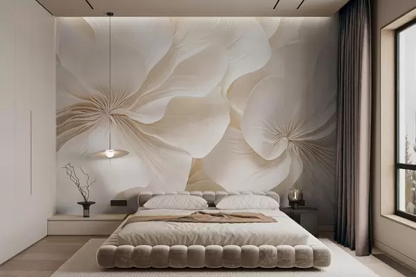 Carta da parati Primo piano di fiori dalla consistenza cremosa con petali delicati e fluenti, che creano una composizione floreale morbida, elegante e strutturata nr. w09346