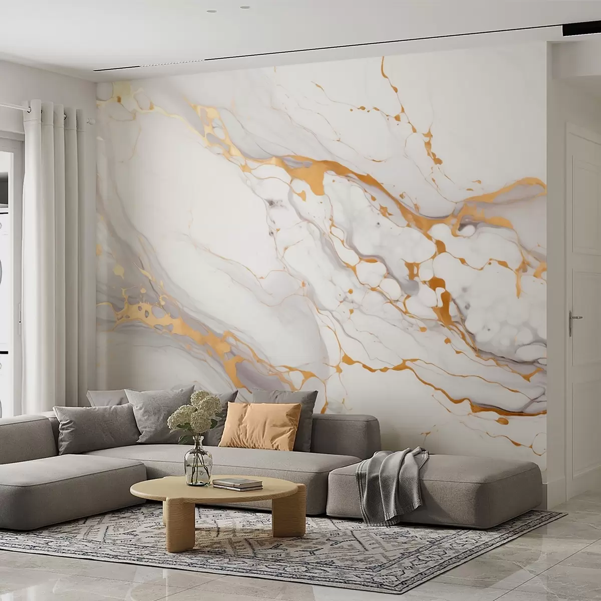 Carta da parati Imitazione della texture del marmo con passaggi di grigio tenue e accenti di giallo nr. w09362