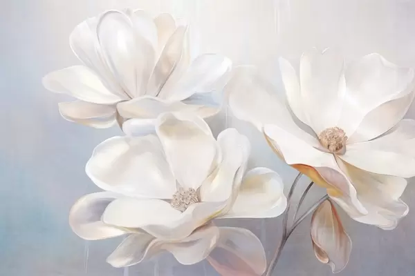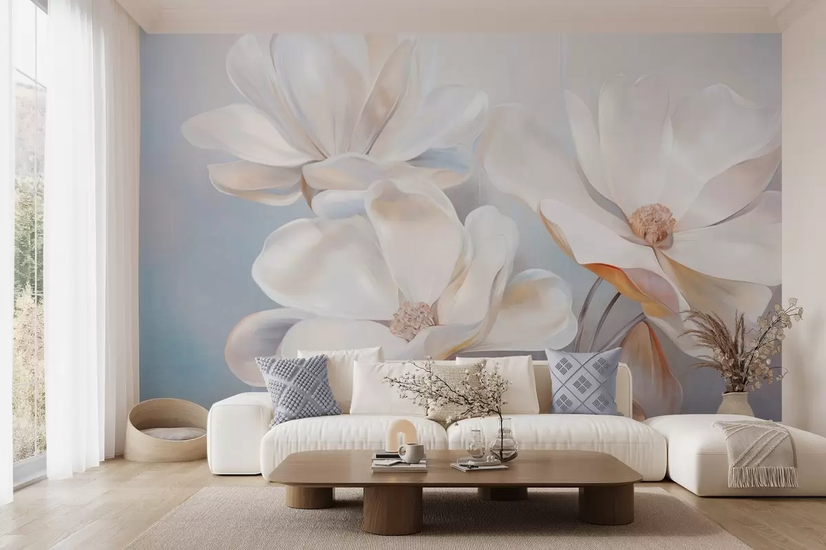 Carta da parati Fiori di magnolia bianchi fantasia con petali dalla texture delicata, su uno sfondo morbido e astratto nr. w09373