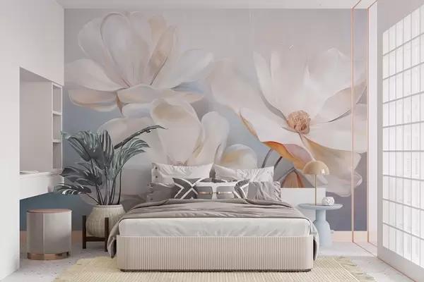 Carta da parati Fiori di magnolia bianchi fantasia con petali dalla texture delicata, su uno sfondo morbido e astratto nr. w09373