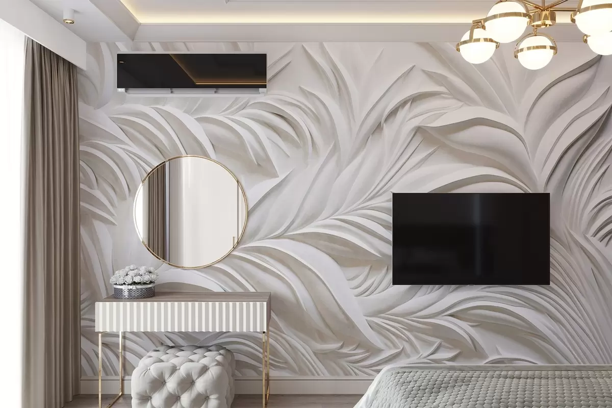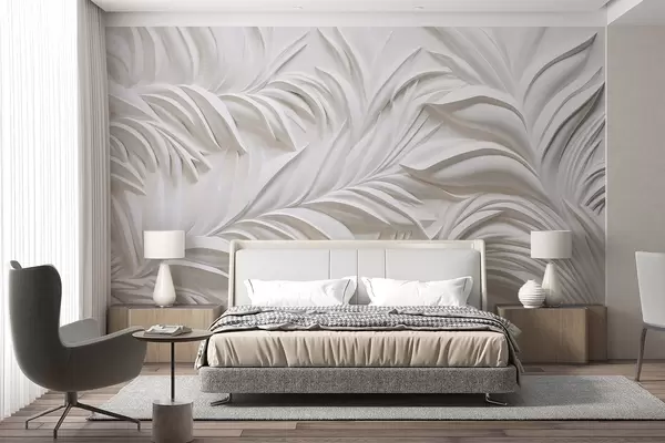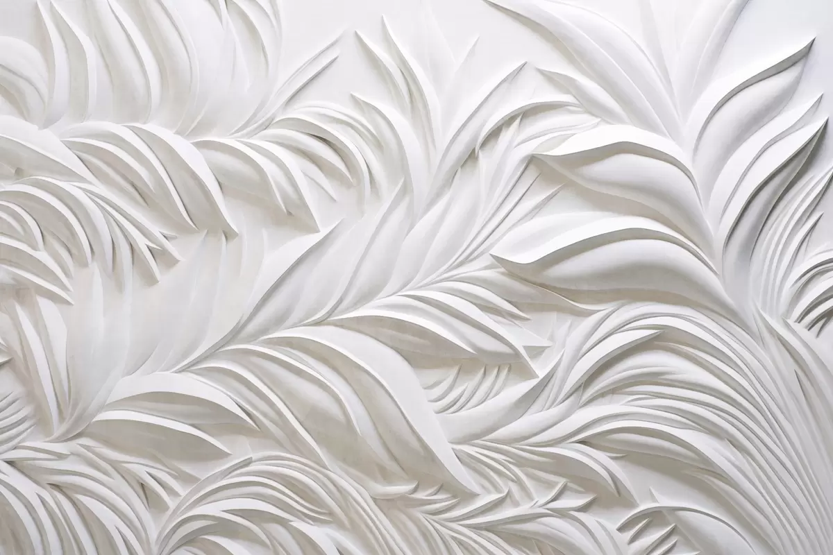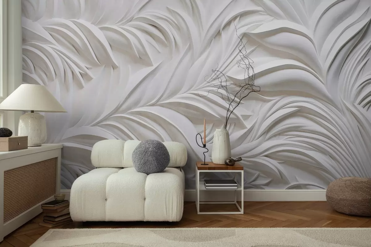 Carta da parati Foglie bianche e elementi floreali astratti e strutturati, estetica minimalista nr. w09378