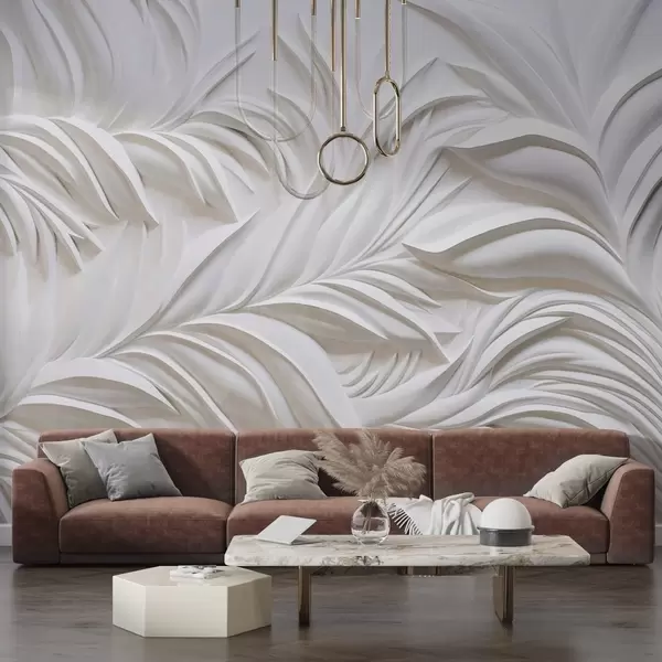 Carta da parati Foglie bianche e elementi floreali astratti e strutturati, estetica minimalista nr. w09378
