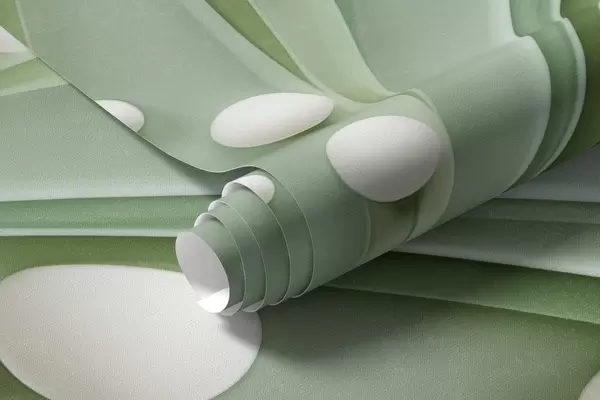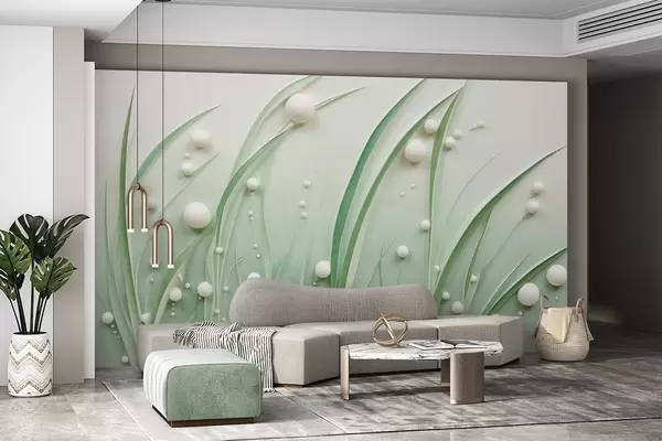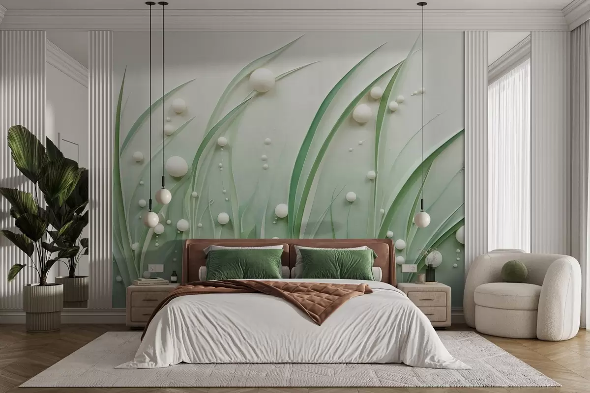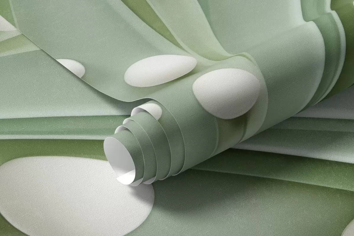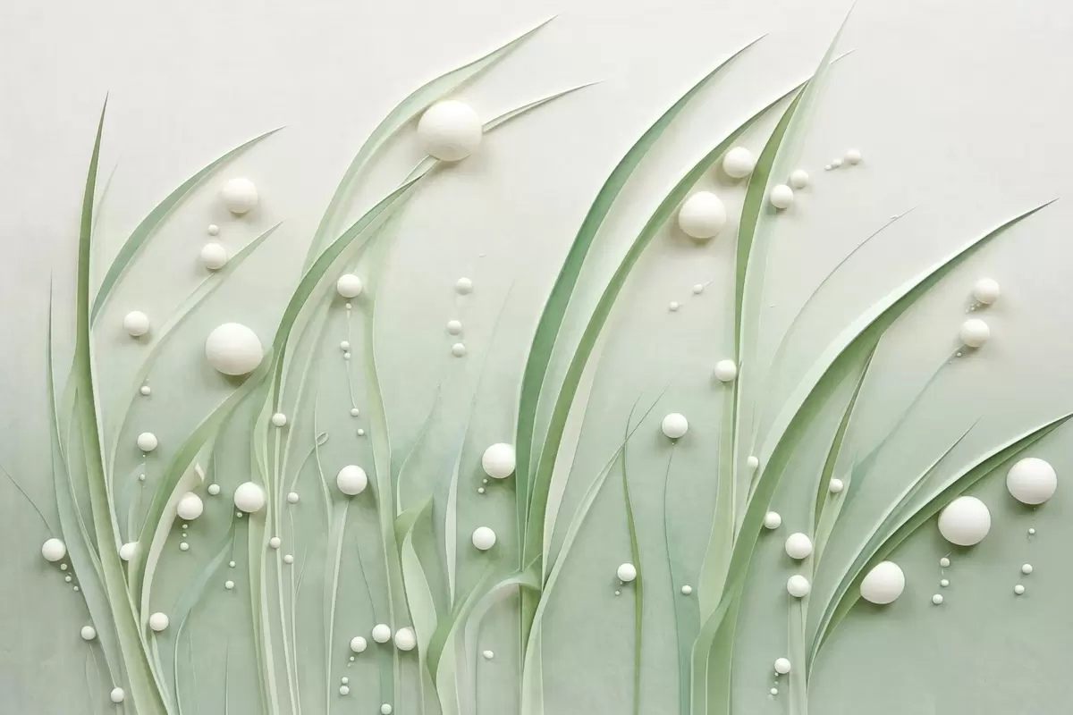 Carta da parati Erba verde astratta con sfere bianche, sfondo verde chiaro, texture, linee pulite, stile minimalista nr. w09382