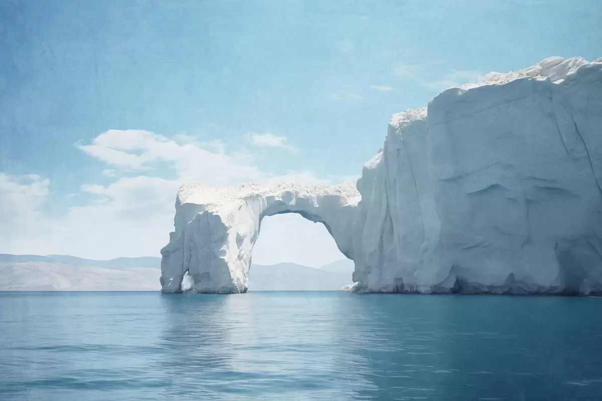 Carta da parati Paesaggio con ponte di ghiaccio naturale sull'oceano, cielo azzurro con alcune nuvole, stampa strutturata nr. w09383