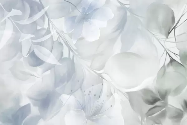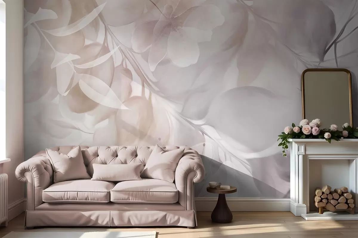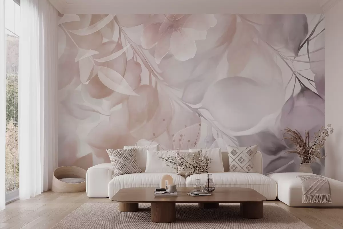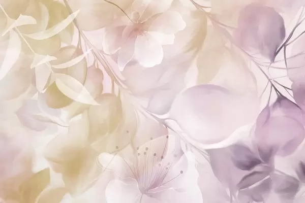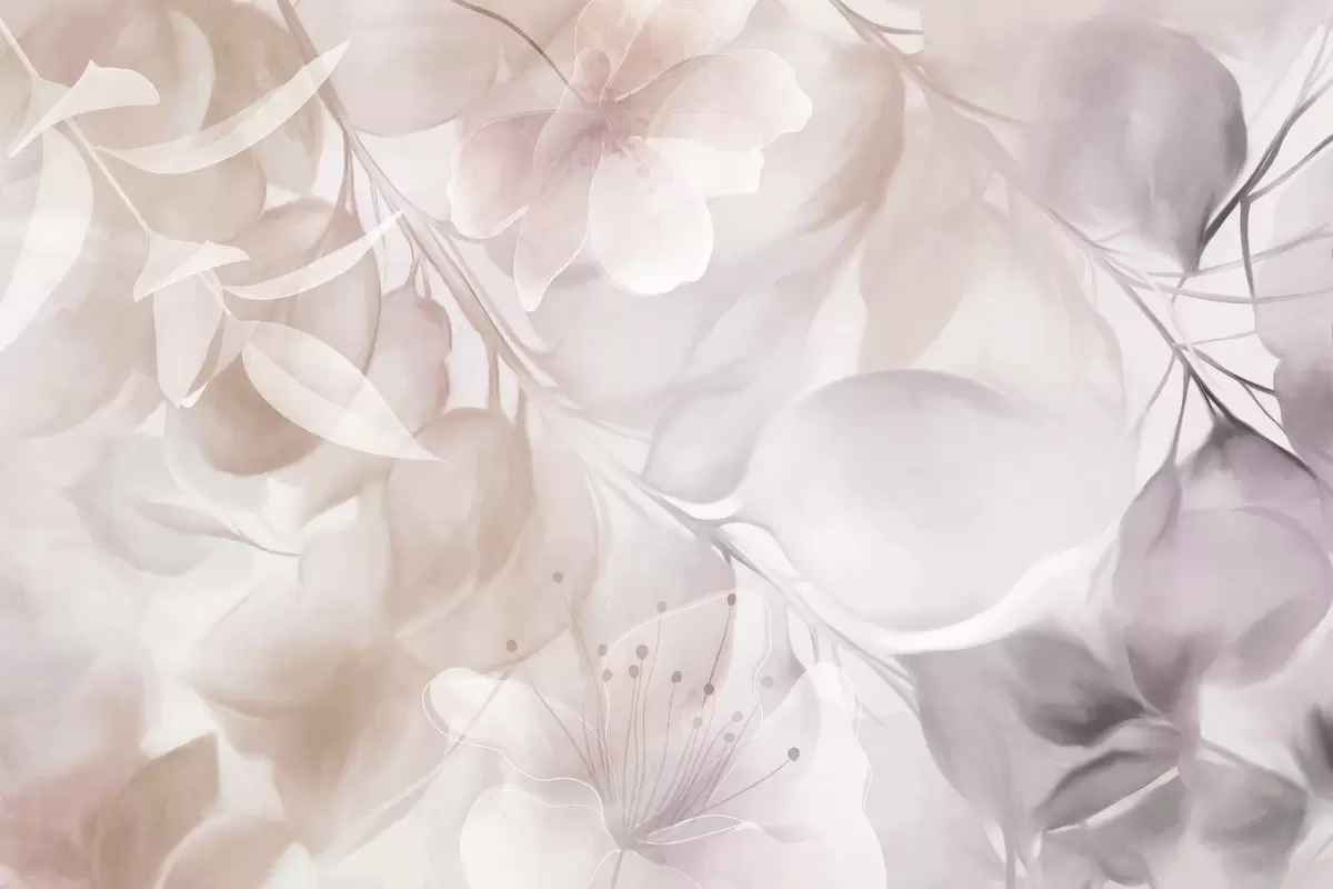 Carta da parati Arte floreale con fiori, foglie e rami nei toni tenui del beige e del marrone, colori pastello delicati, effetto acquerello nr. w09397