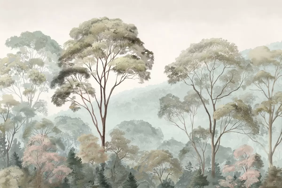 Carta da parati Mattina nebbiosa nella foresta in stile acquerello nr. w09405