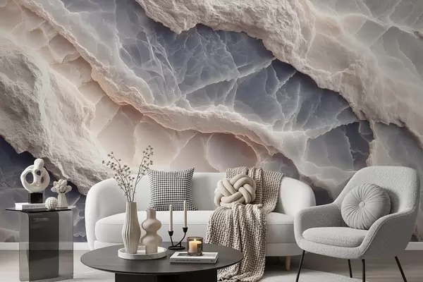 Carta da parati Elegante astrazione nello stile degli strati di marmo e dei minerali nei colori blu-beige nr. w09408