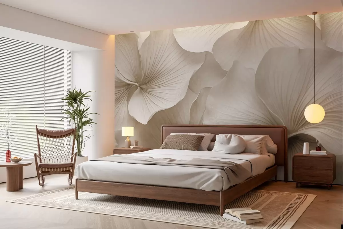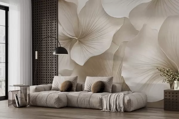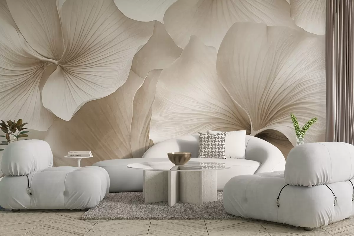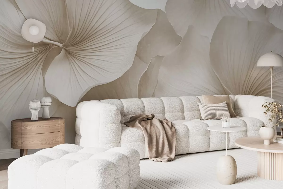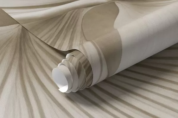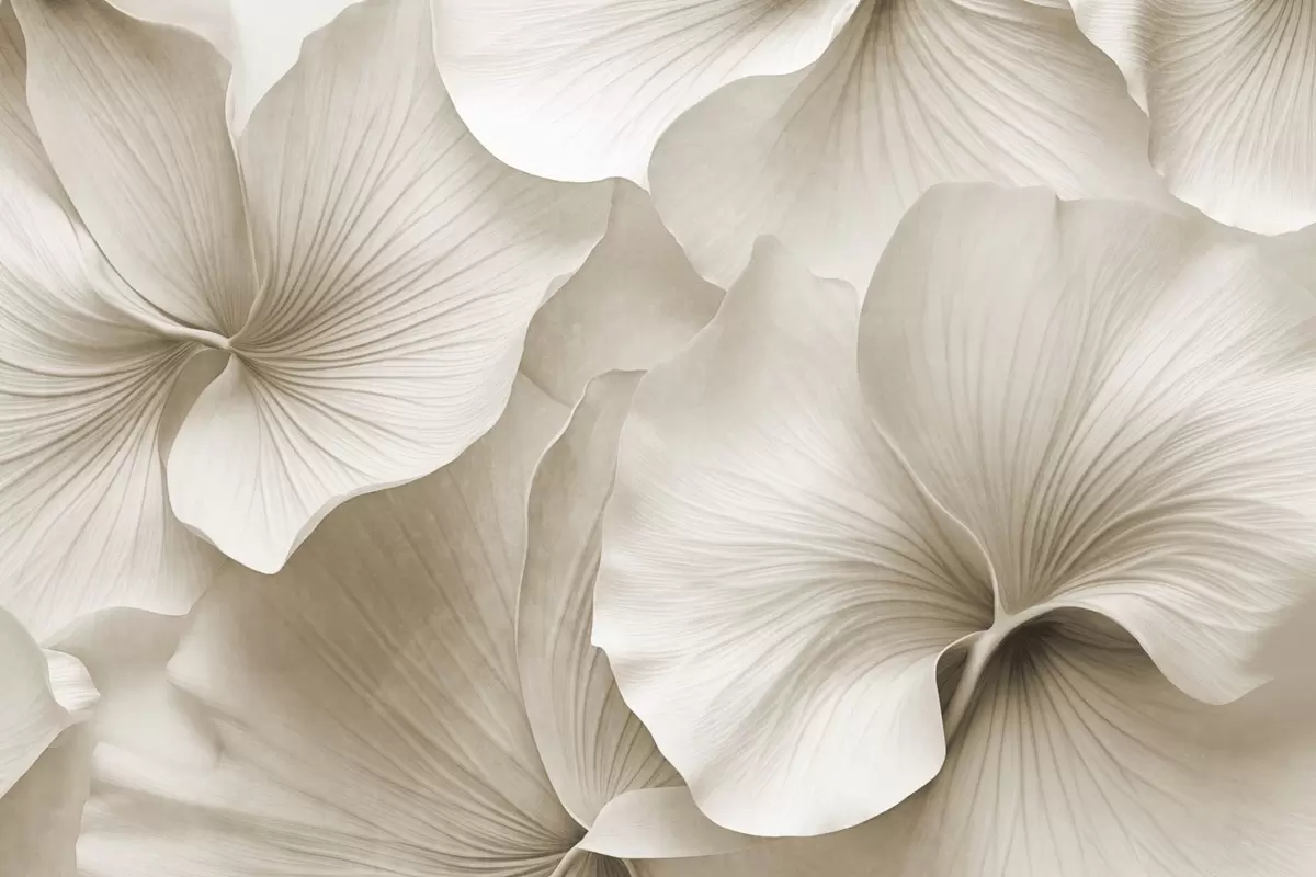 Carta da parati Foglie di ginkgo bianche e beige, texture morbida, sfondo floreale astratto, stile moderno minimalista nr. w09421v1