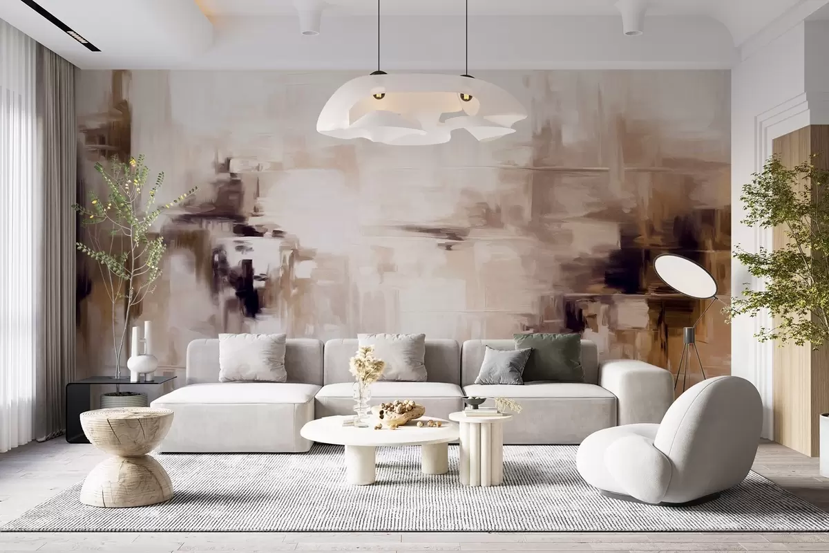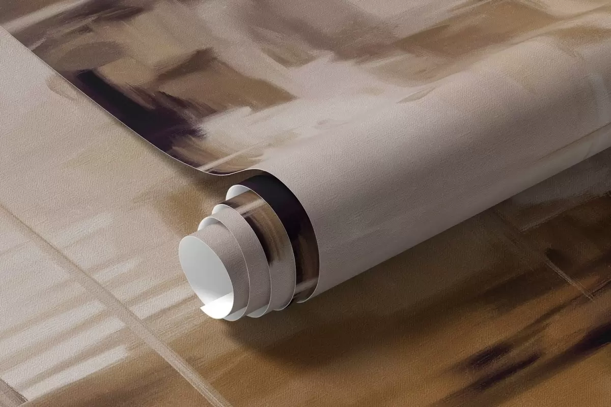 Carta da parati Imitazione di un dipinto astratto di paesaggio con pennellate marroni e bianche, in stile moderno nr. w09422v1