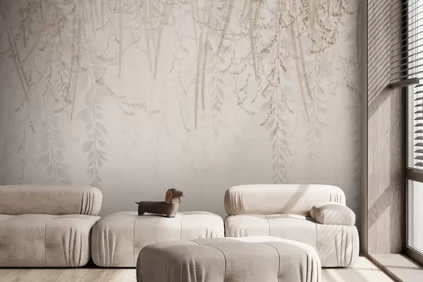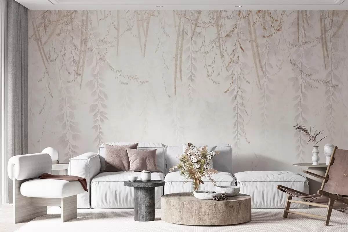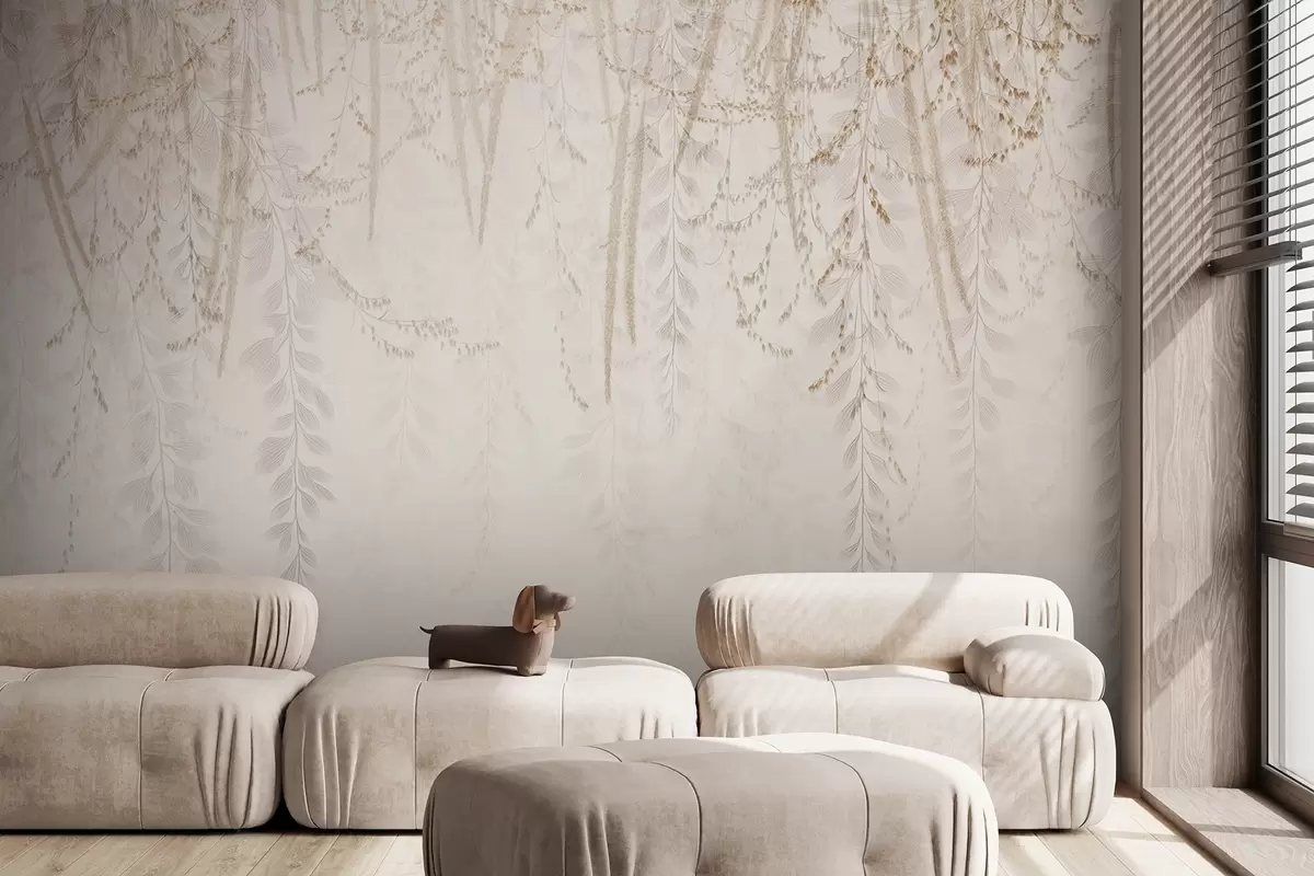Carta da parati Foglie e rami leggeri sospesi nei toni del beige nr. w09433