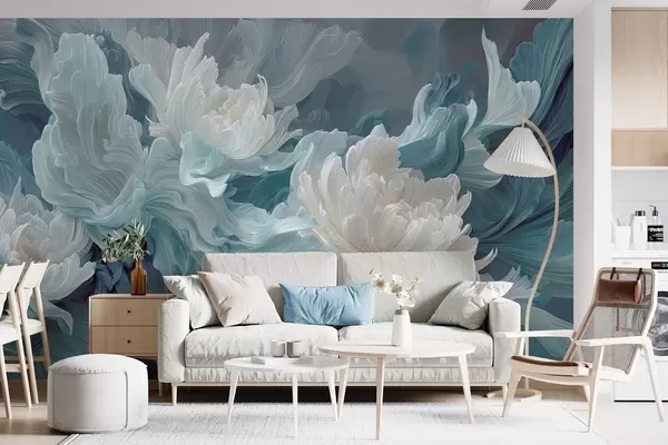 Carta da parati Fiori astratti nei toni del blu e del turchese nr. w09452