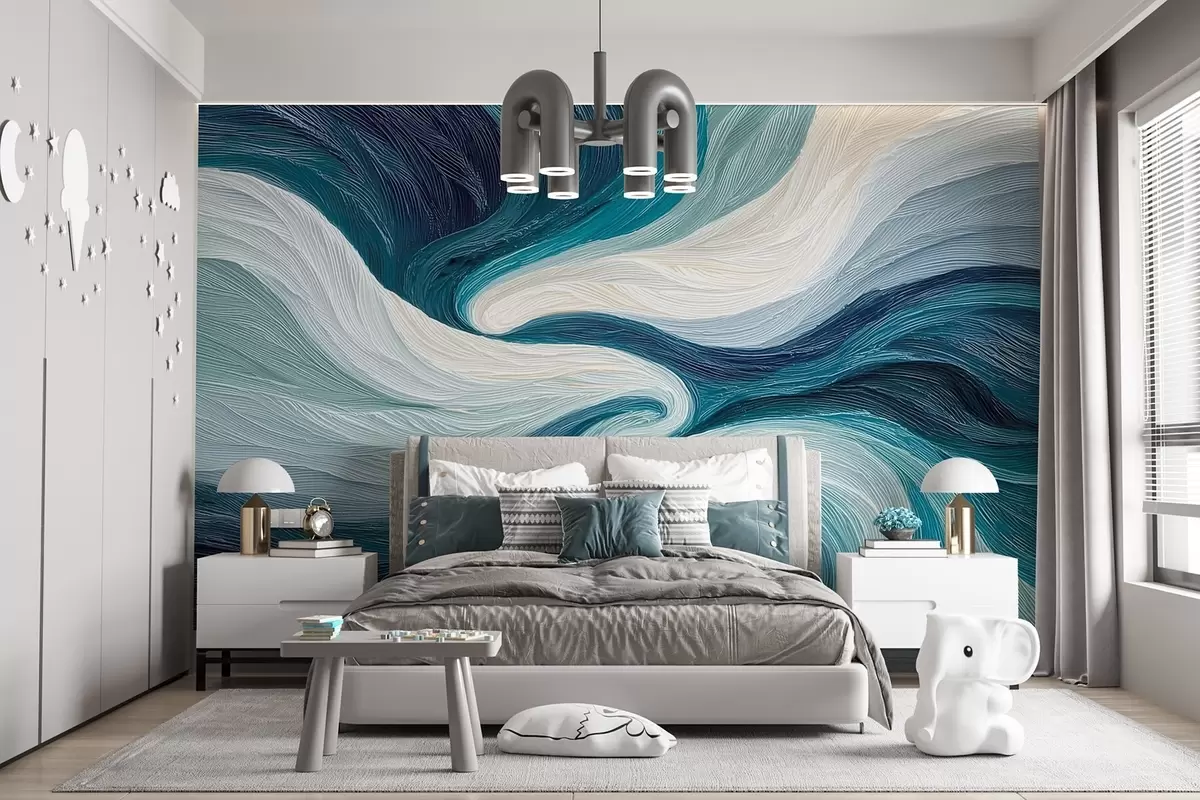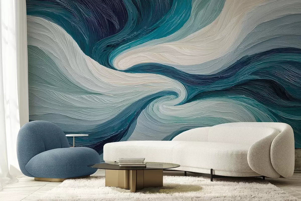 Carta da parati Acqua astratta e vento in tonalità fredde nr. w09453