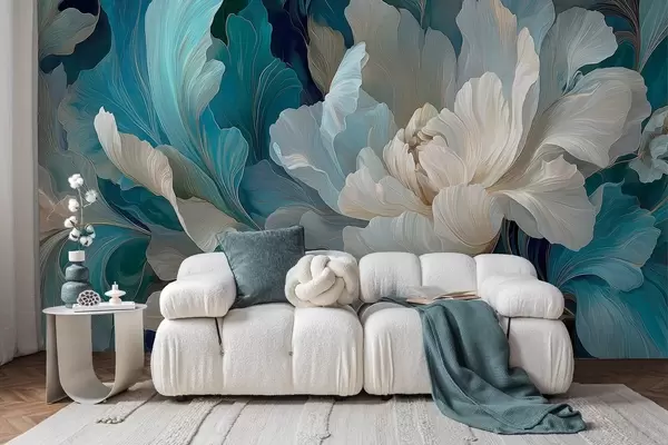 Carta da parati Delicata peonia volumetrica in una palette fredda nr. w09456