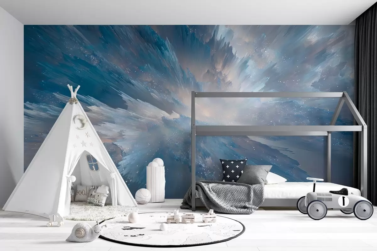 Carta da parati Astratto bagliore cosmico del cielo in toni blu ghiaccio nr. w09461
