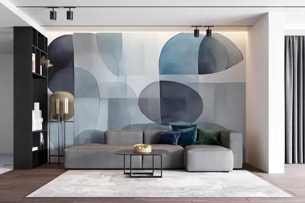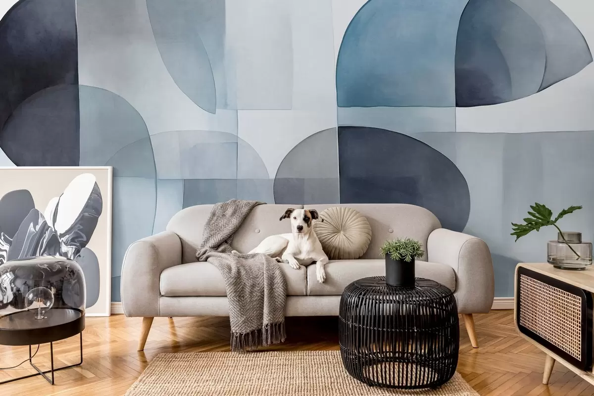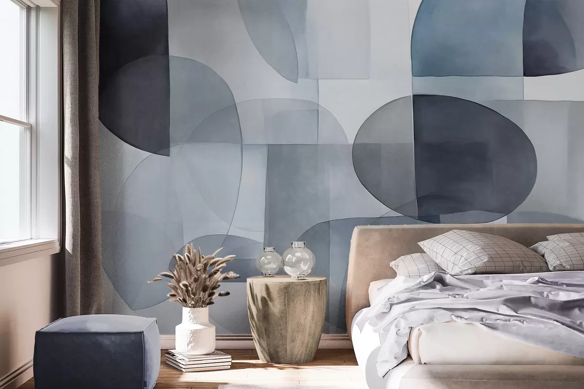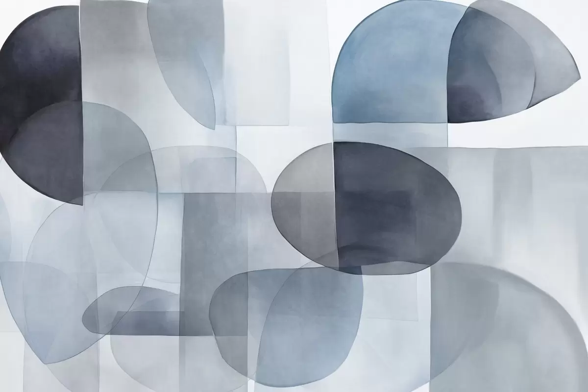 Carta da parati Forme astratte con texture in tonalità di grigio e blu, toni tenui, composizione minimalista, sfondo neutro nr. w09467v1
