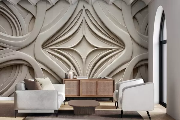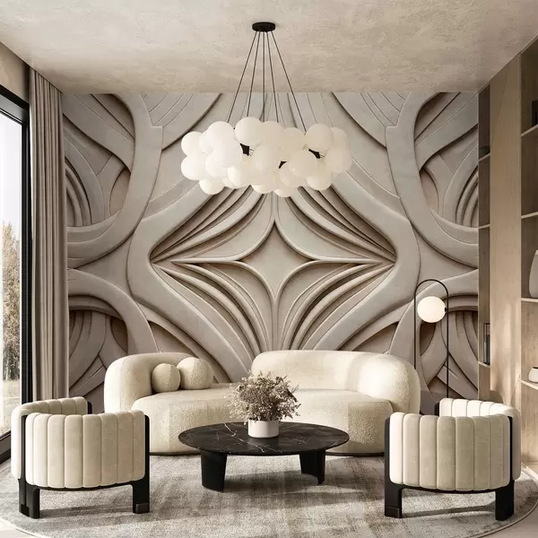 Carta da parati Stampa geometrica astratta simmetrica con texture, colore beige chiaro, stile art déco, dettagli intricati nr. w09473