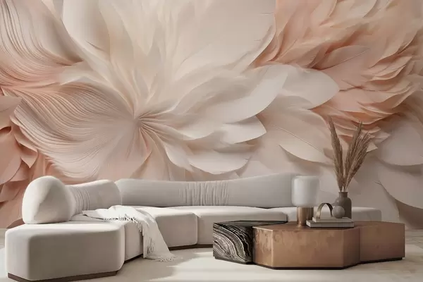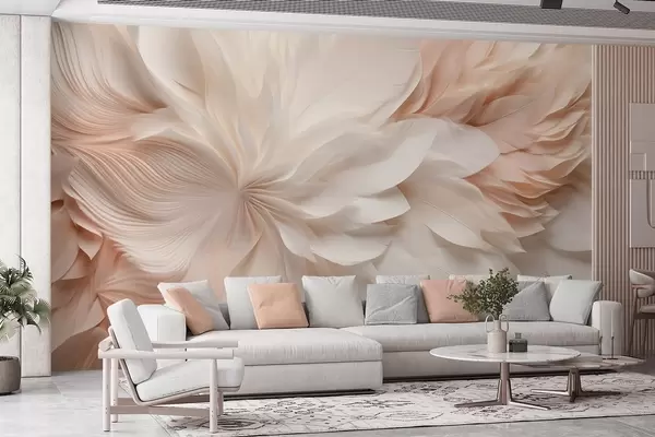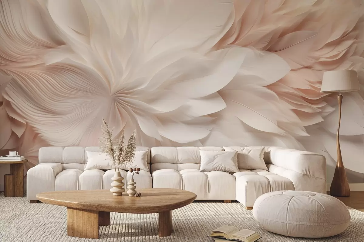 Carta da parati Delicate piume astratte in movimento nei toni del beige e del crema nr. w09509