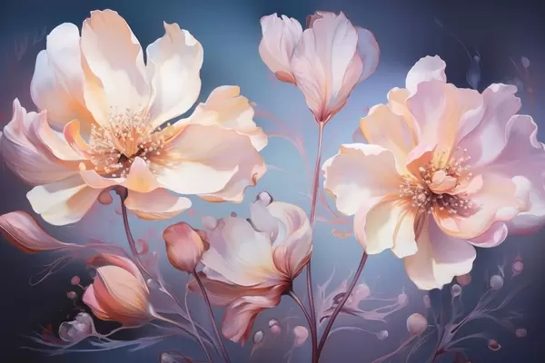 Carta da parati Peonie rosa chiaro color crema in stile acquerello su sfondo blu intenso nr. w09513