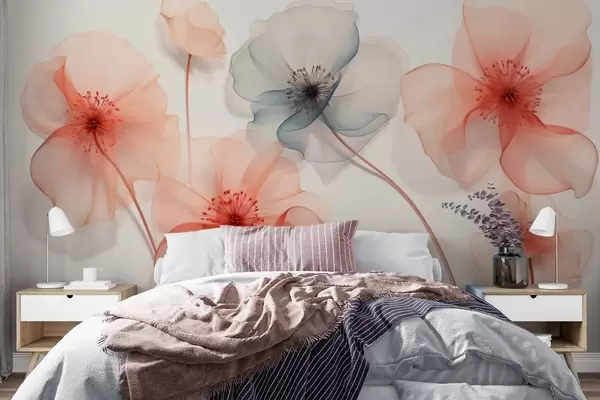 Carta da parati Fiori traslucidi nei toni del rosso e del blu nr. w09515