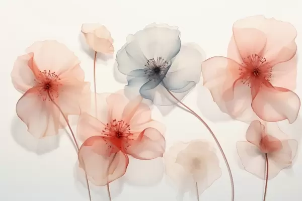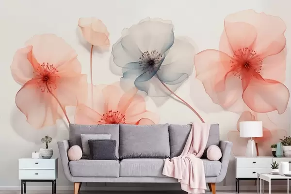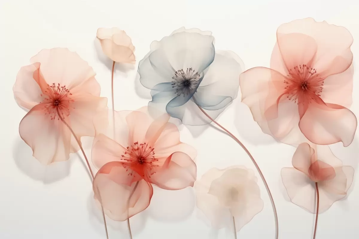 Carta da parati Fiori traslucidi nei toni del rosso e del blu nr. w09515