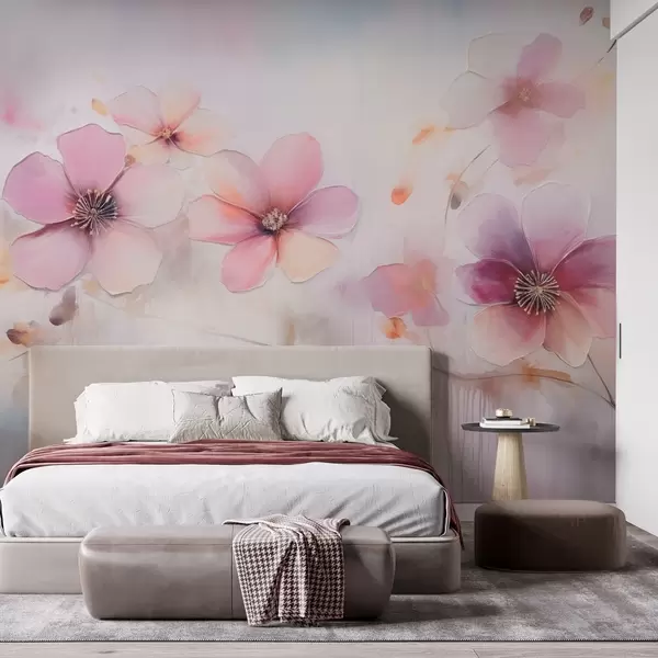 Carta da parati Ramo con fiori rosa in stile acquerello nr. w09522