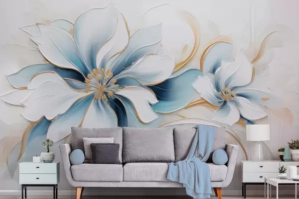 Carta da parati Astrazione pittorica con fiori blu in stile pittura a olio nr. w09524