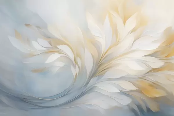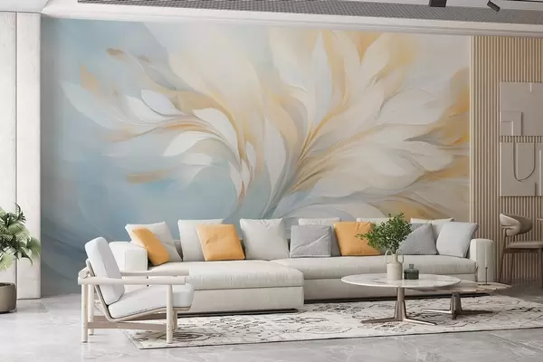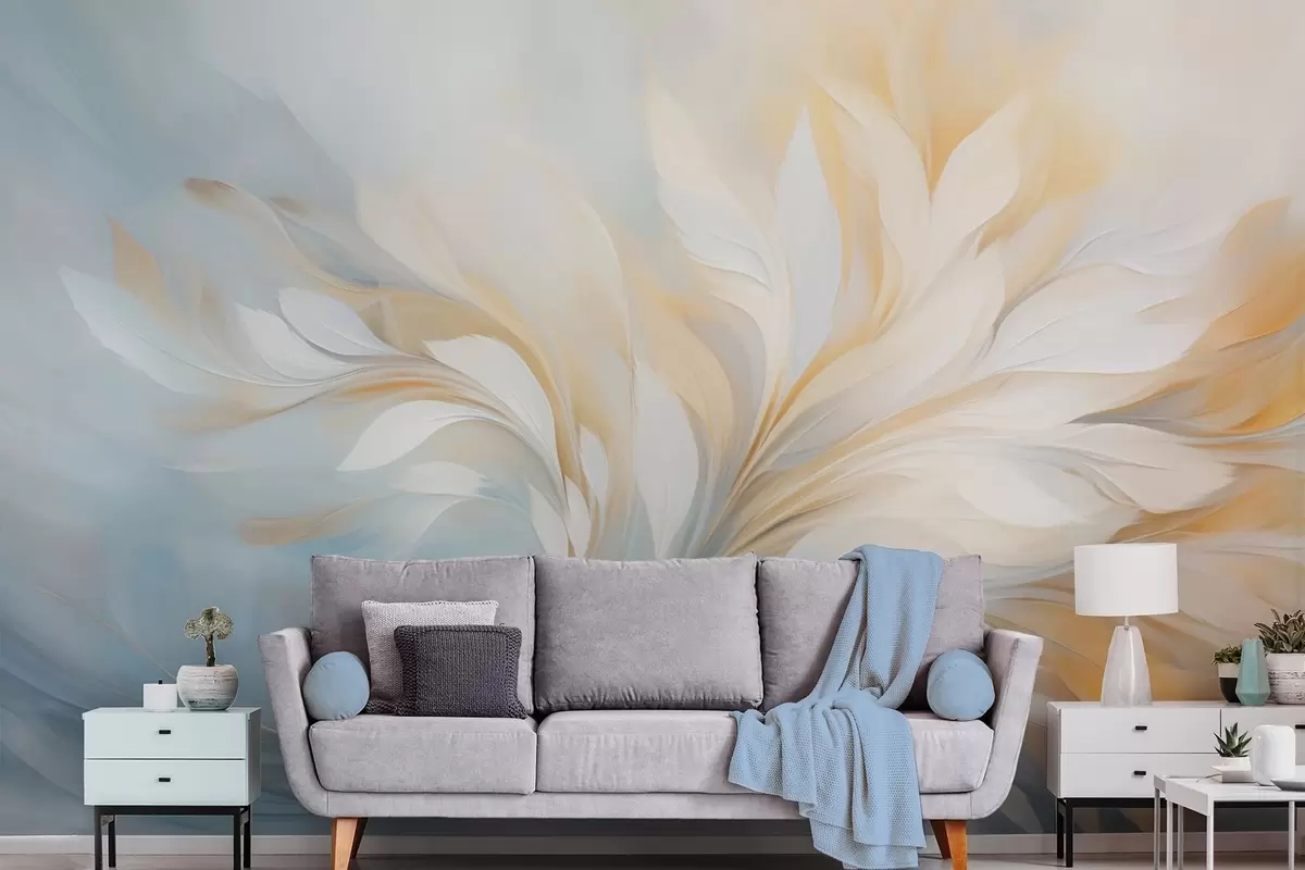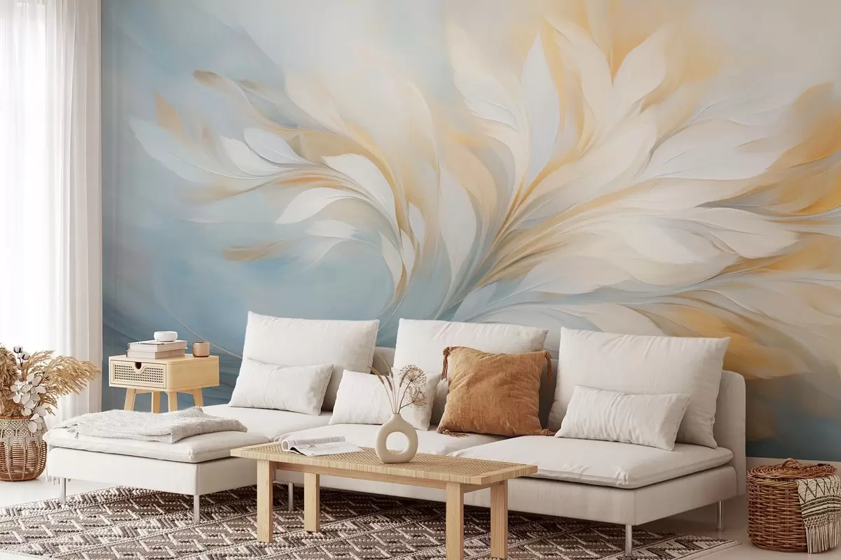 Carta da parati Composizione astratta di forme morbide simili a piume nei toni del giallo e del blu nr. w09525