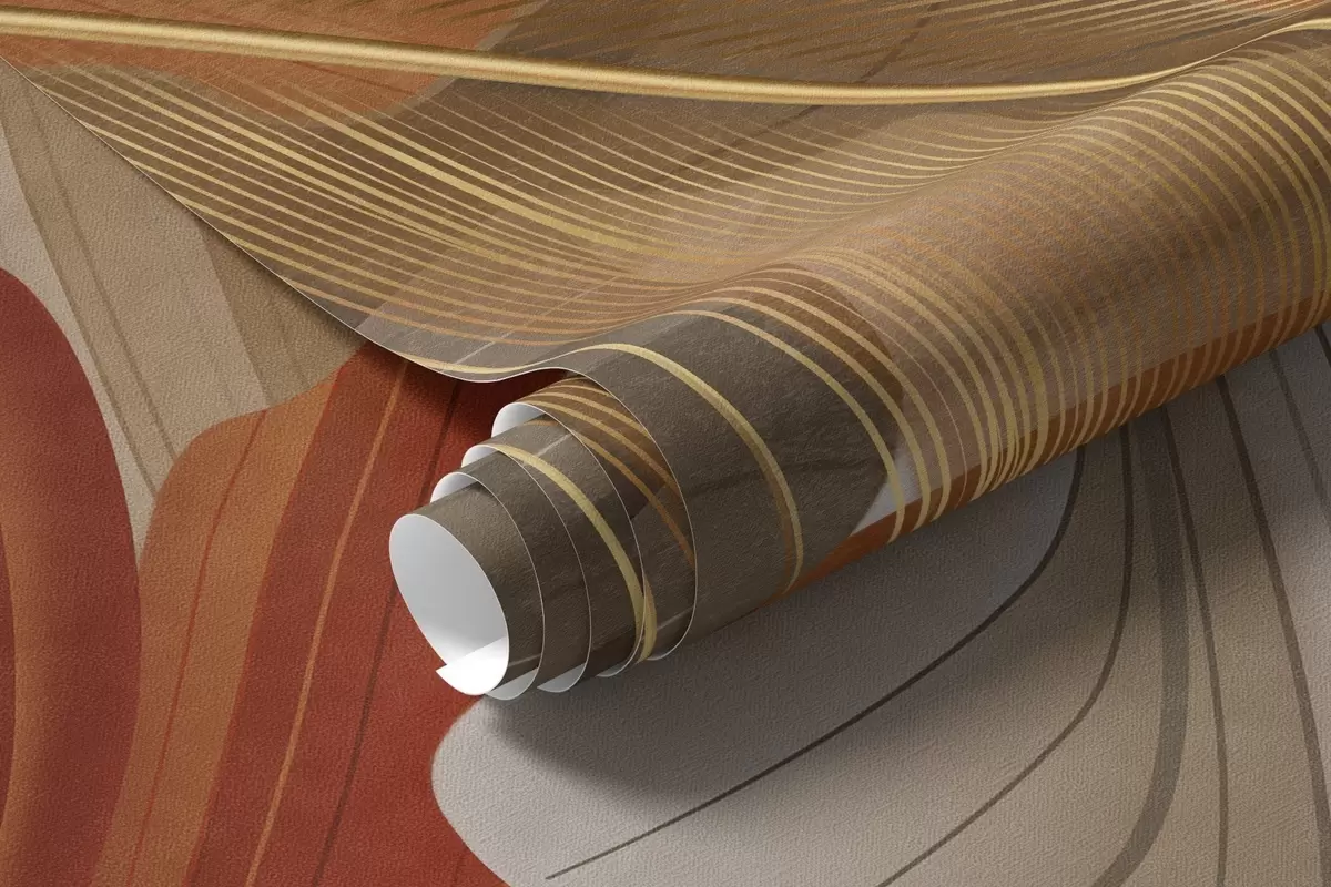 Carta da parati Forme fluide astratte e strutturate nei colori crema e ruggine con delicate piume gialle, beige e marroni nr. w09549